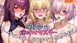 「世界を救うため……えっちな儀式を始めます」「サーバントを強化するためには『霊基融合交配』をしなくてはならない!」「それは、特定の英霊とセックスして‘受胎’させること…」困惑するマシュ、ジャンヌ、スカサハを相手に今日も種付けセックスで世界平和を目指します!